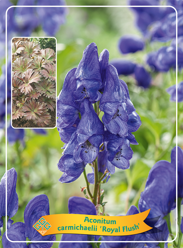Аconitum carmichaelii 'Royal Flush' је запањујућа вишегодишња биљка за јесењу садњу, која додаје посебан визуелни ефекат башти својим преливајућим бојама листова и дубоко љубичастим цветовима. Савршен је избор за природне засаде, шумске баште или сенковите гредице, где уз правилну негу може постати прави врхунац јесење сезоне.