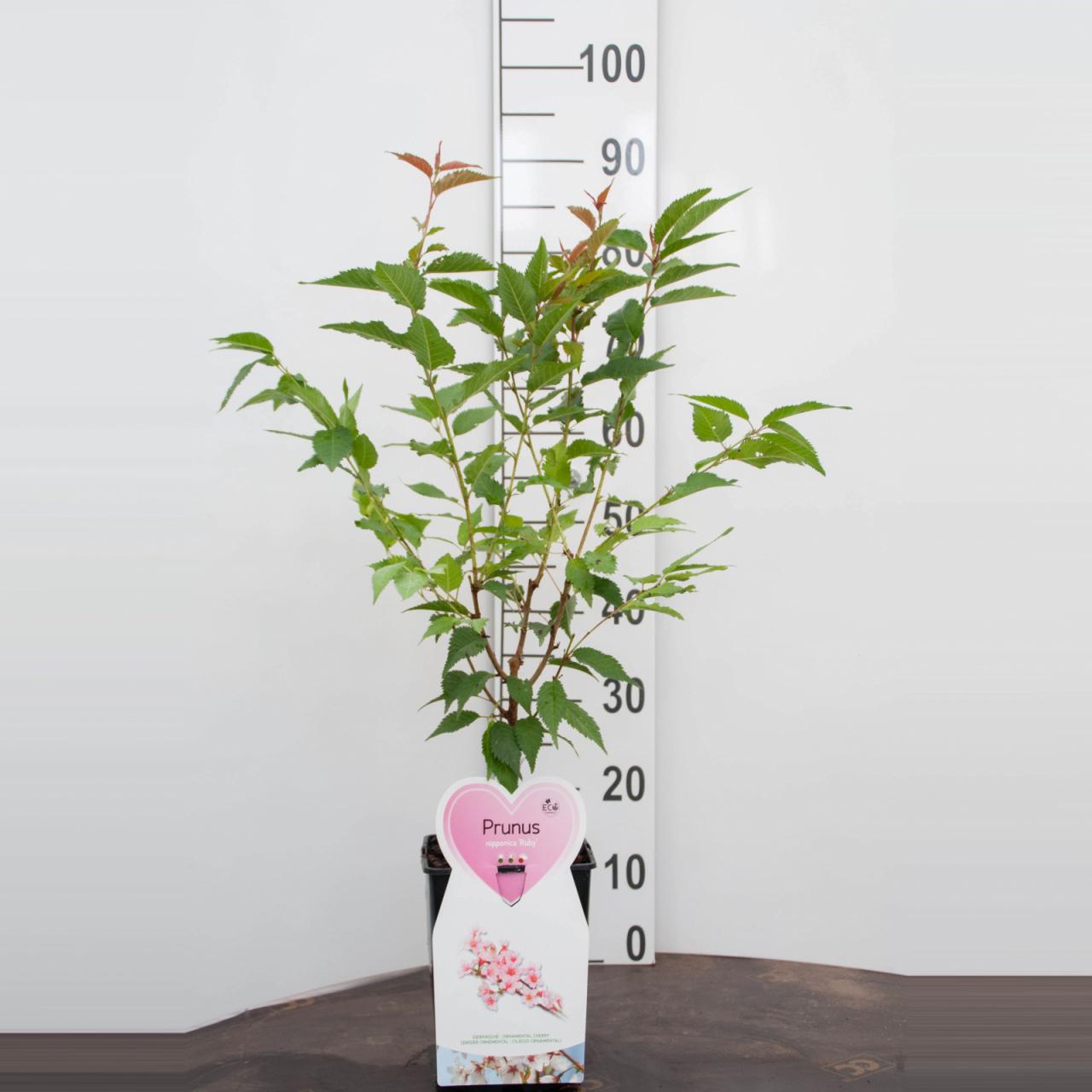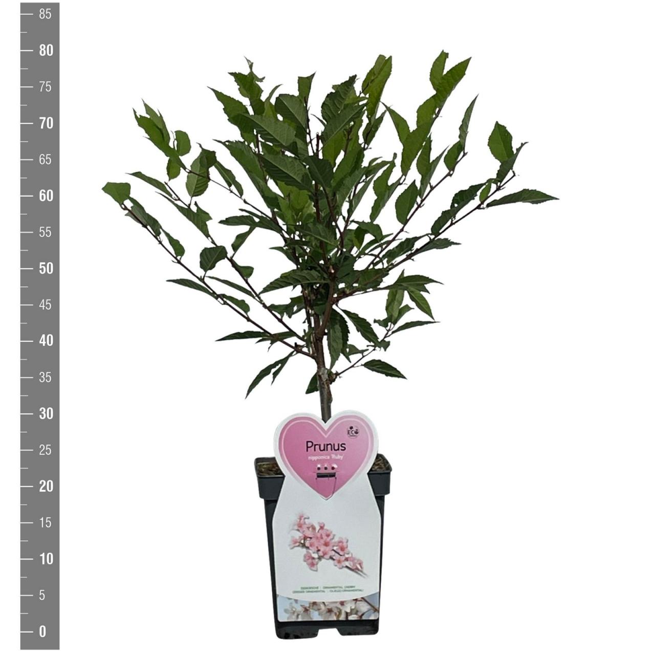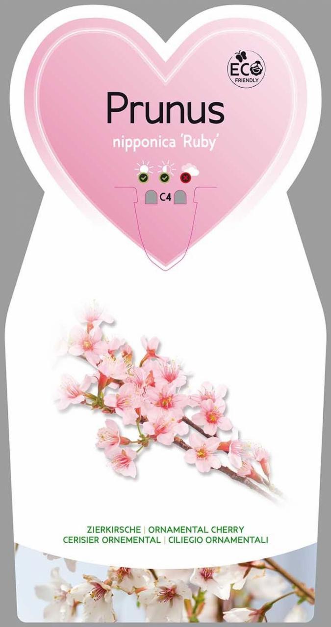 Руби јапанска трешња је популарна украсна сорта трешње позната по својим атрактивним цветовима и листовима. Цветови су обично ружичасте боје и појављују се у марту и априлу. Зелено лишће постаје љубичасто у јесен, што ову сорту чини још атрактивнијом. Посадите је у добро дренирано, благо кисело земљиште на сунчаном или полусенковитом месту. Може да издржи температуре до -34°C.