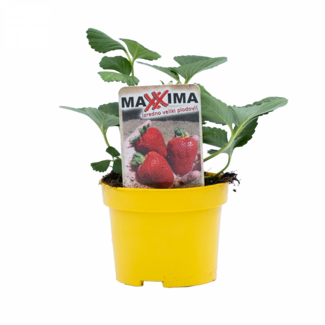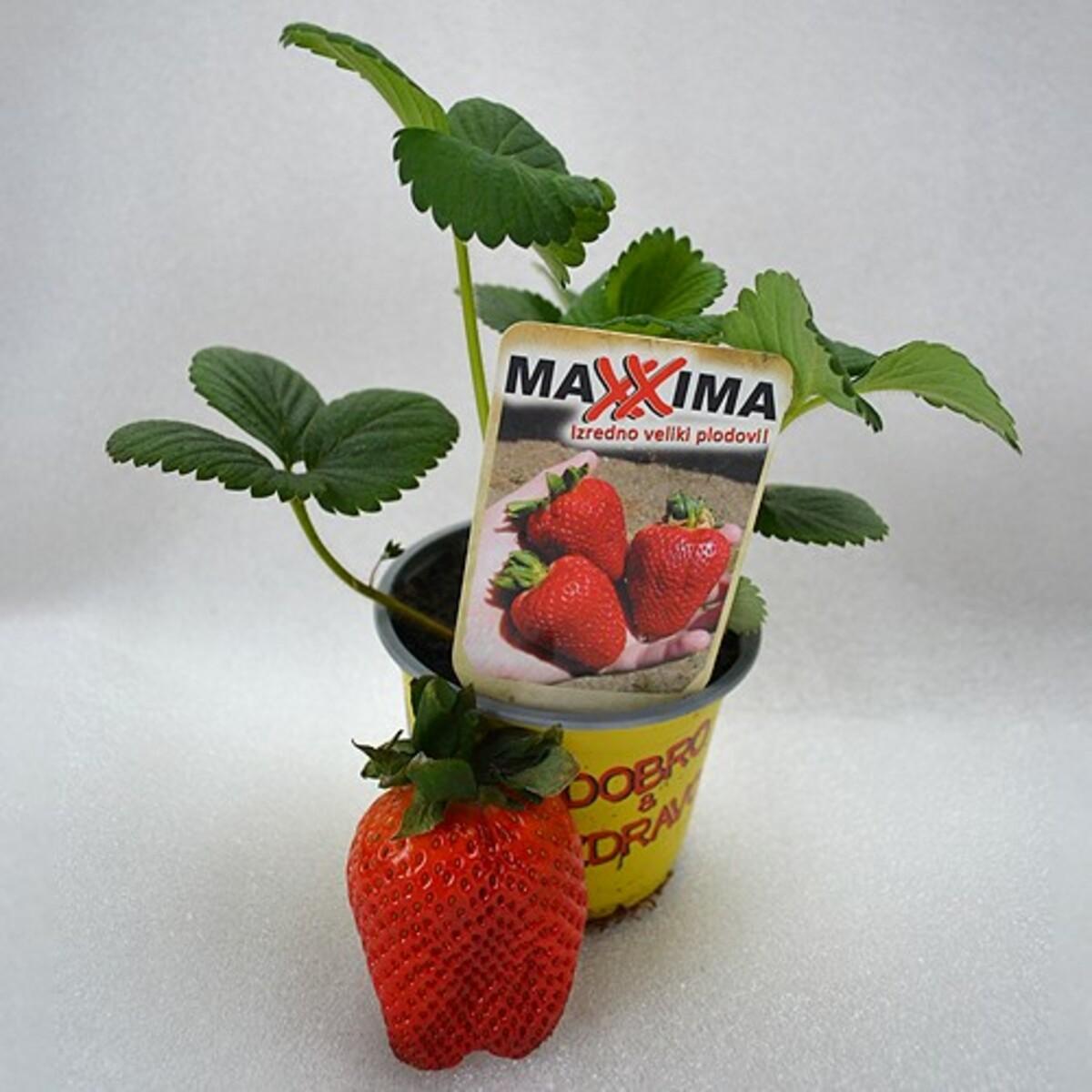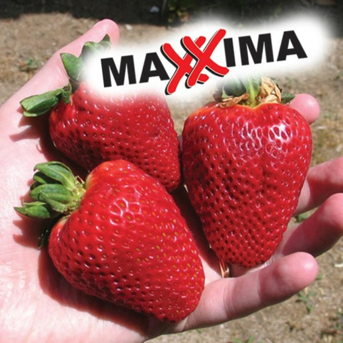 Јагода Максима је једноплодна сорта јагоде са веома крупним плодовима, који су тамноцрвене боје и одличног укуса. Биљка је снажна, усправна и густог раста. Формира средње велике живе ограде. Плодови сазревају од средине до краја јуна.