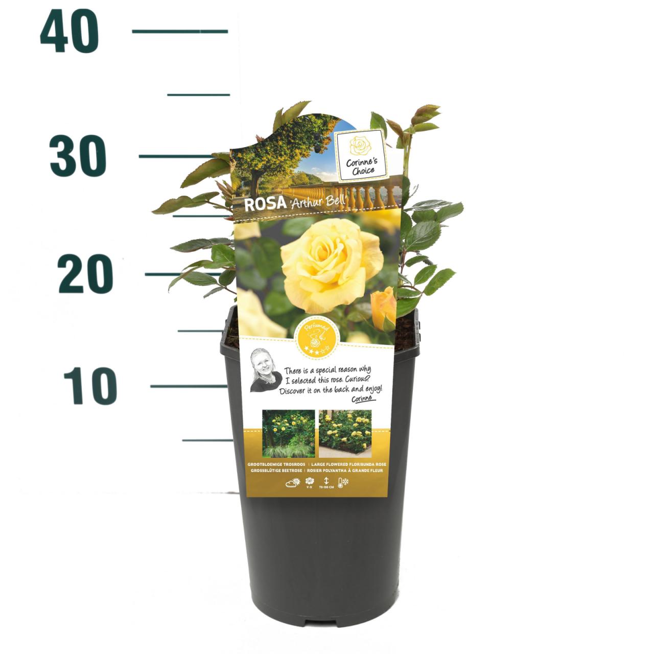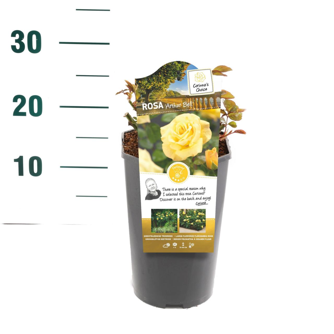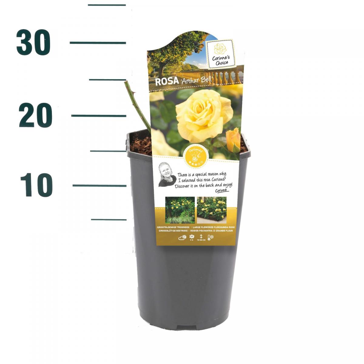 Роса Артур Бел®Опис биљке: вишецветна ружаБоја цвета: жутаОблик раста: жбунастМирис цвета: средње јакДоступно у саксији од 3 литра.