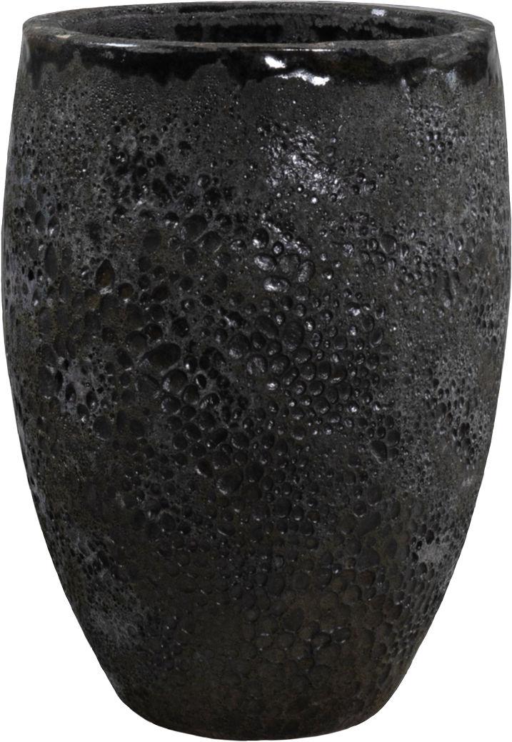 Ова модерна декоративна саксија за цвеће има текстуру насталу гравирањем керамике, која укључује суптилне неправилности, храпавост и ситне трагове мехурића ваздуха. У комбинацији са црном и природним тоновима боје, ствара динамичан изглед који привлачи пажњу.